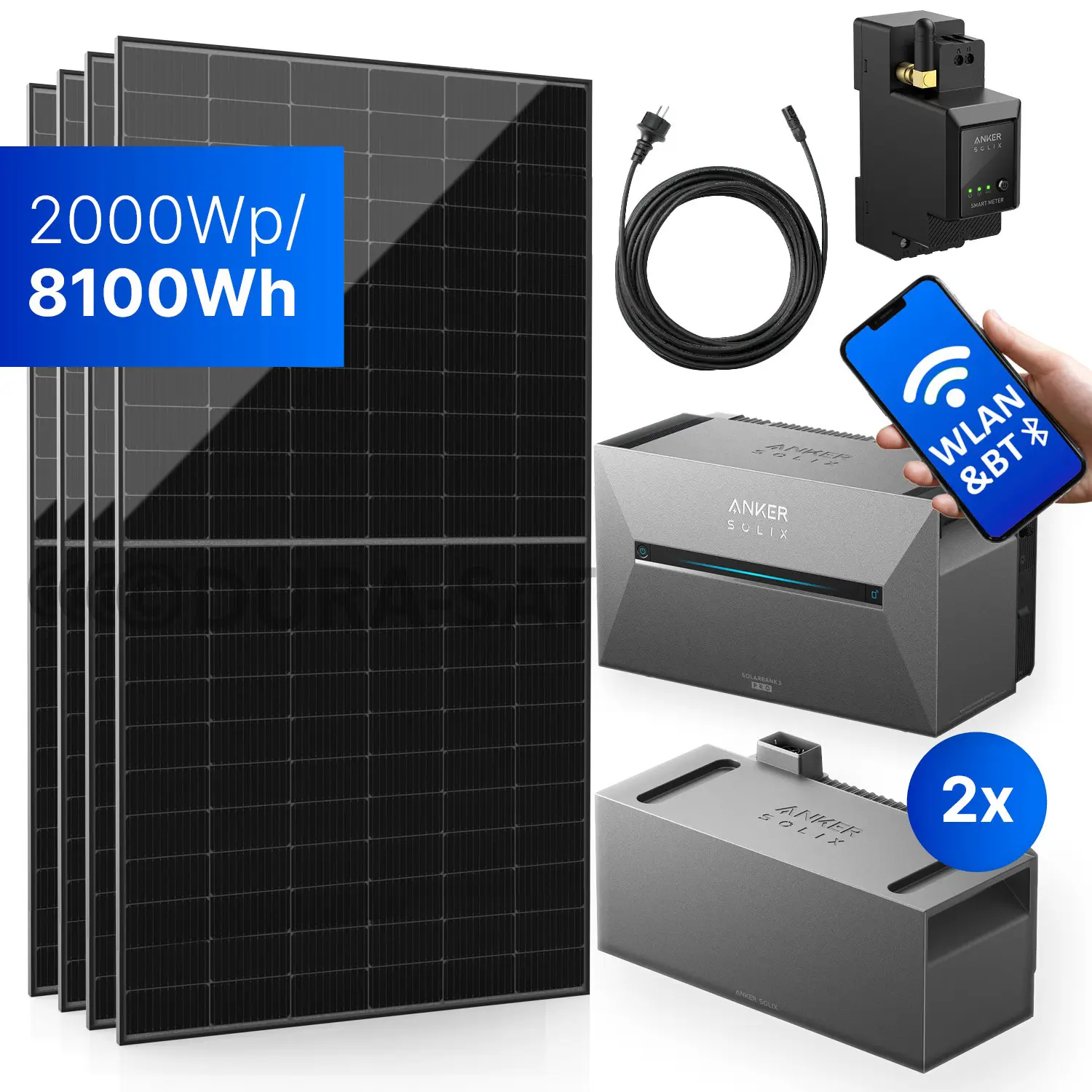 2000Wp Balkonkraftwerk mit Anker SOLIX Solarbank 3 E2700 PRO - 8100Wh - 4x500Wp