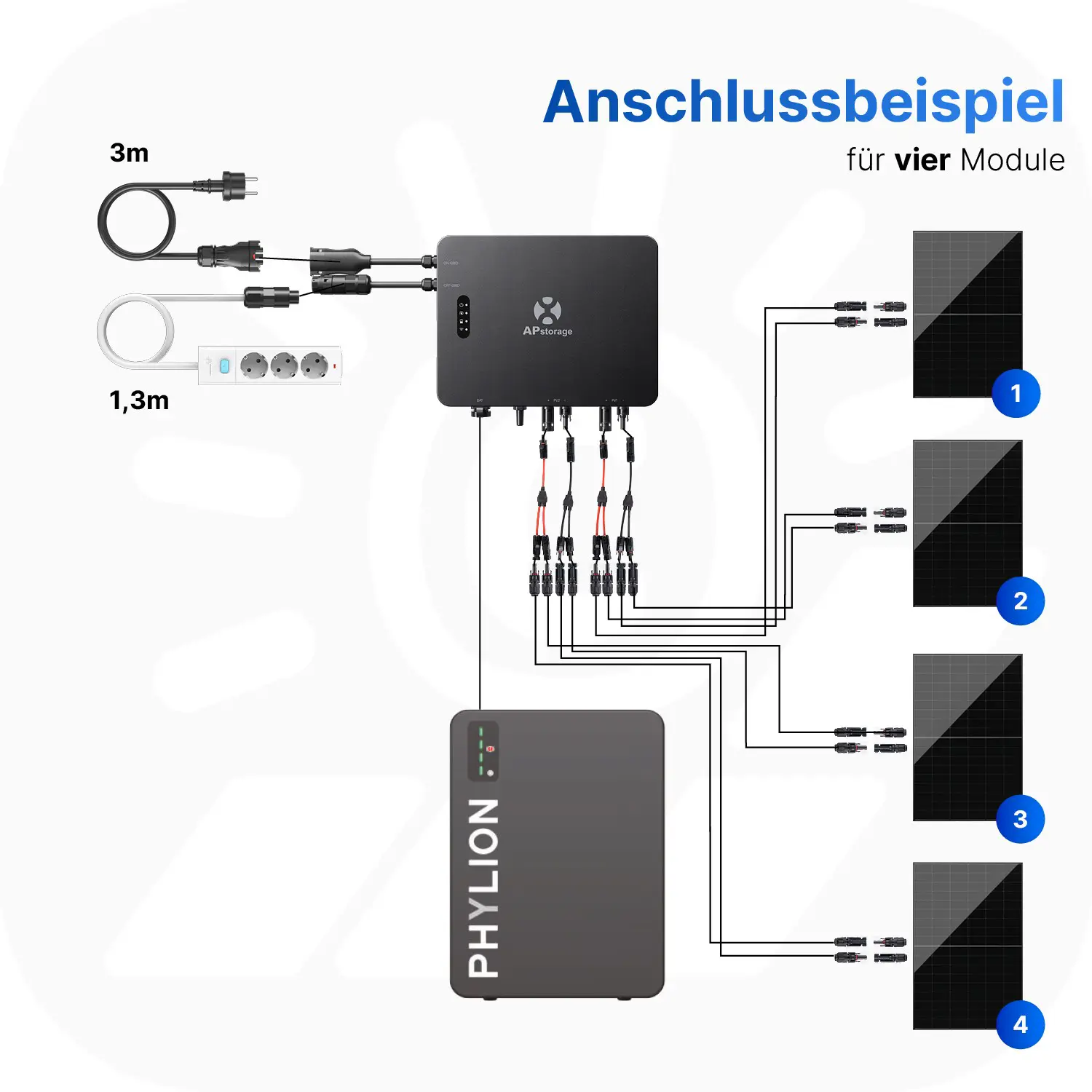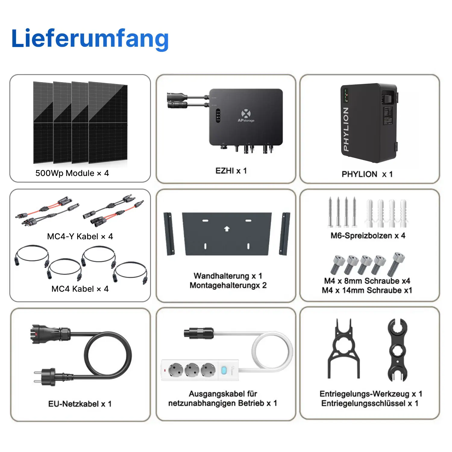 APsystems EZHI 2000Wp/2,76kWh - Balkonkraftwerk Speicher-Set | Phylion LiFePO4 Batteriespeicher & Jolywood 500Wp Module