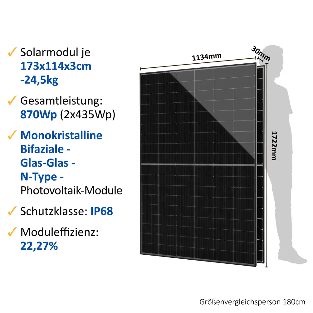 Balkonkraftwerk 800W/870Wp bifazial mit 3m Anschlusskabel