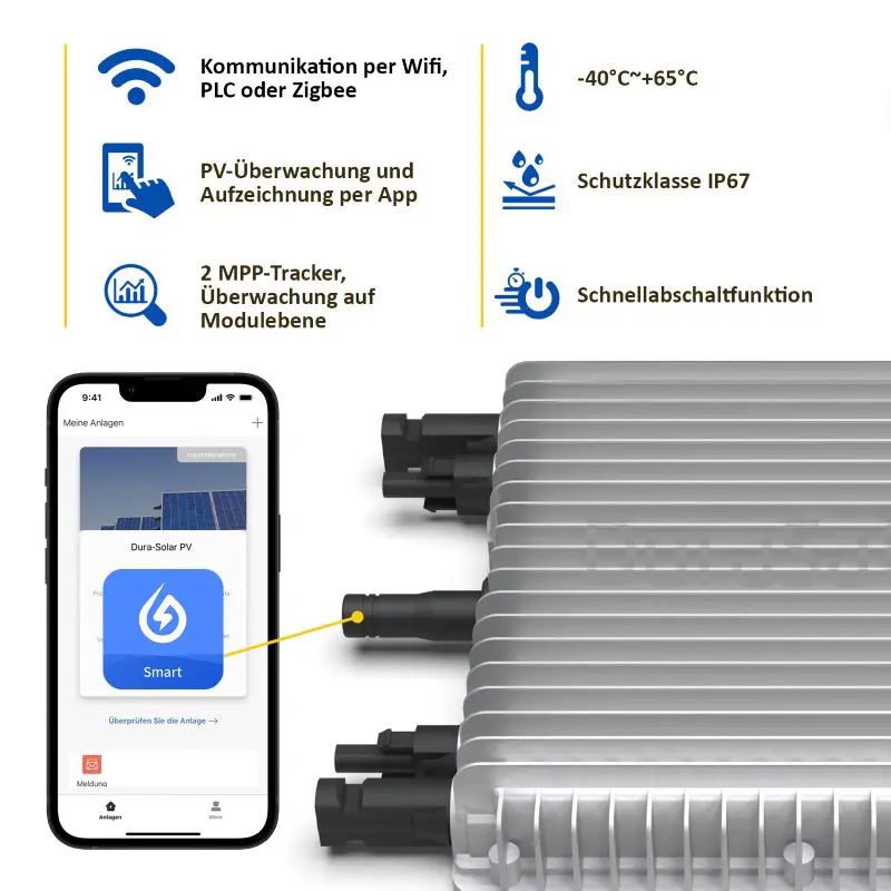 - Kabellänge 1,4m (i.d.R. keine MC4 Verlängerungskabel notwendig)