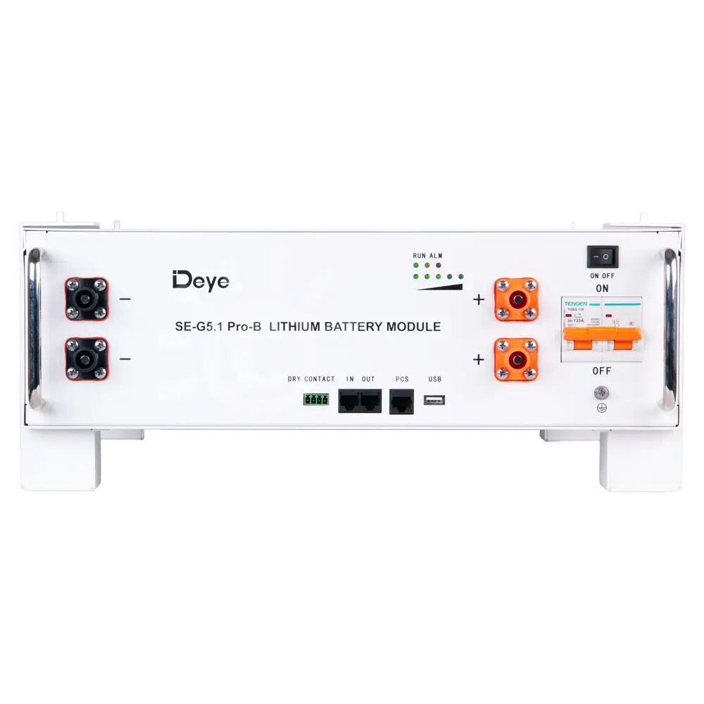 - Sicher und langlebig: Die Deye SE-G5.1 Pro-B verwendet eine kobaltfreie LFP-Batterie für erhöhte Sicherheit und eine lange Lebensdauer