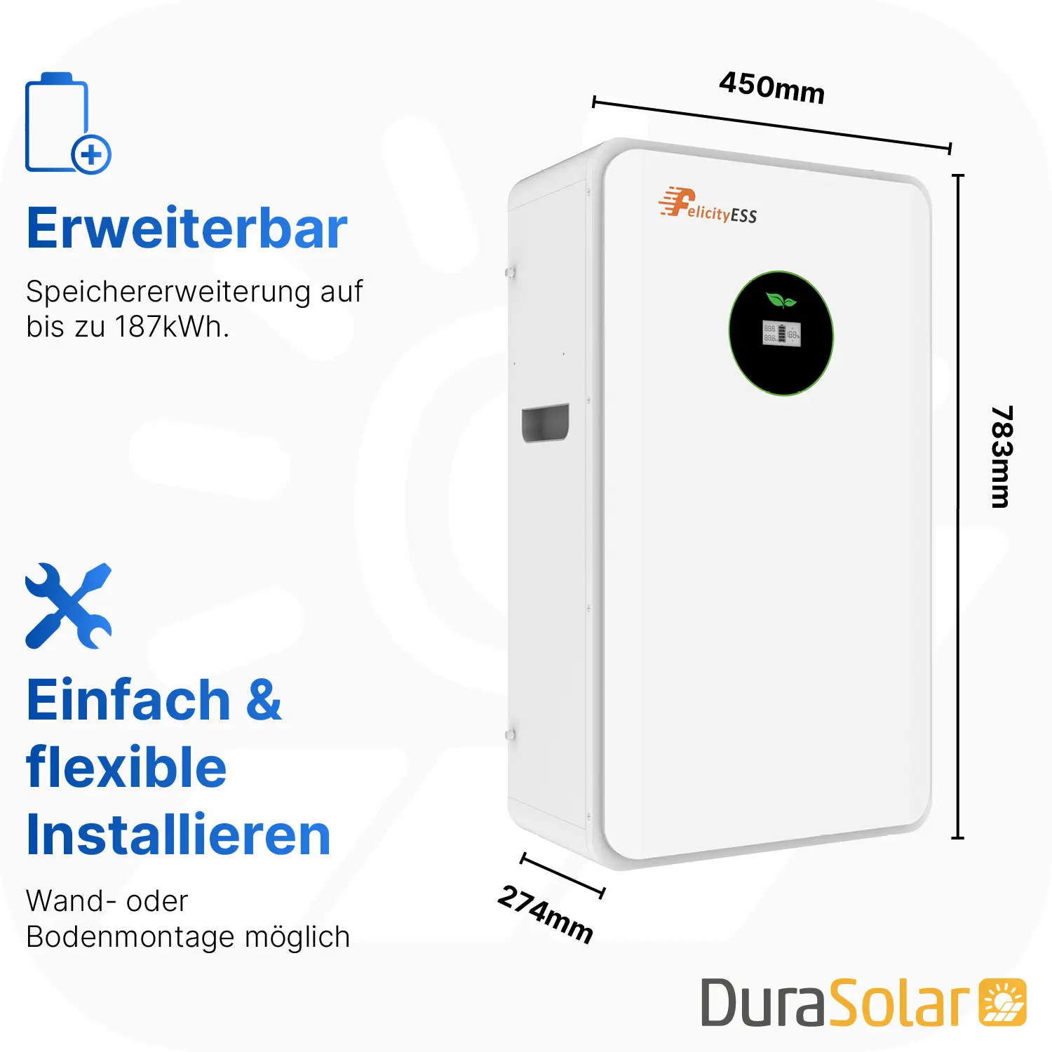 - Flexible Kapazitätserweiterung: Modular erweiterbarer Speicher zur Anpassung an den individuellen Energiebedarf