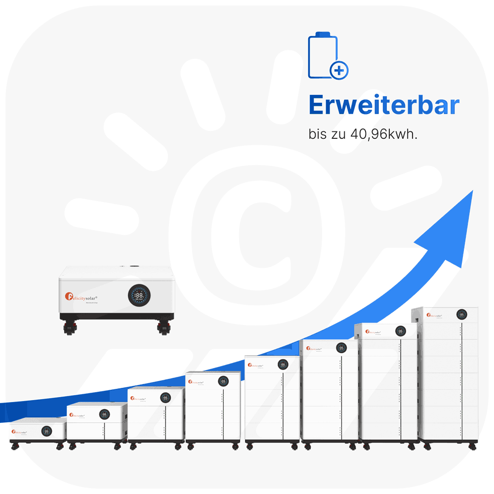 - Erweiterbare Speicherkapazität: Modular erweiterbarer Speicher bis zu 40,96 kWh