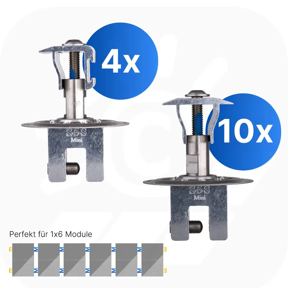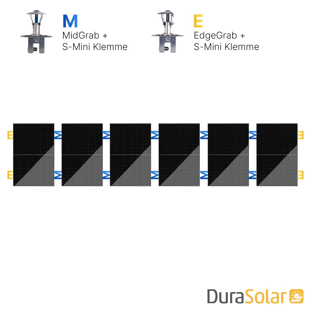 - Mittel und Endmodulklemmen inklusive Modulauflagescheiben aus Edelstahl und Erdungszähnen