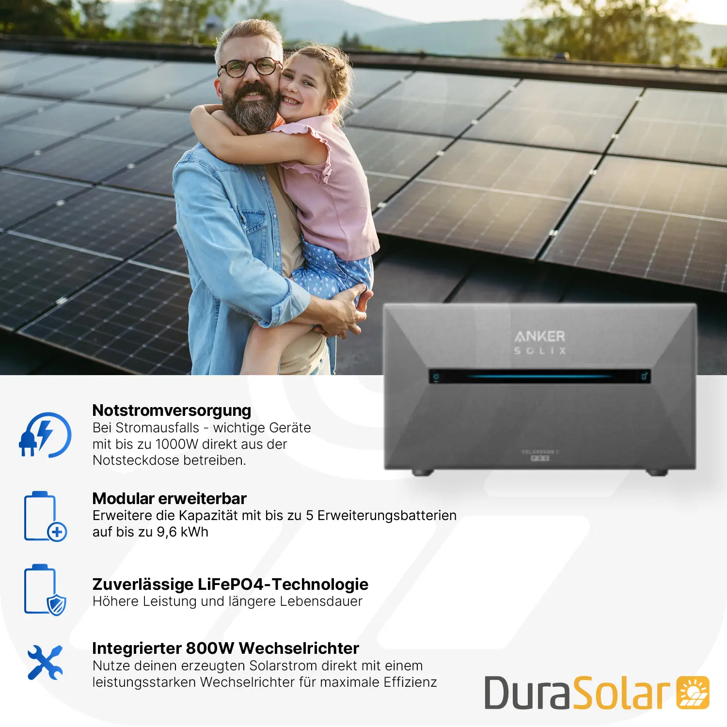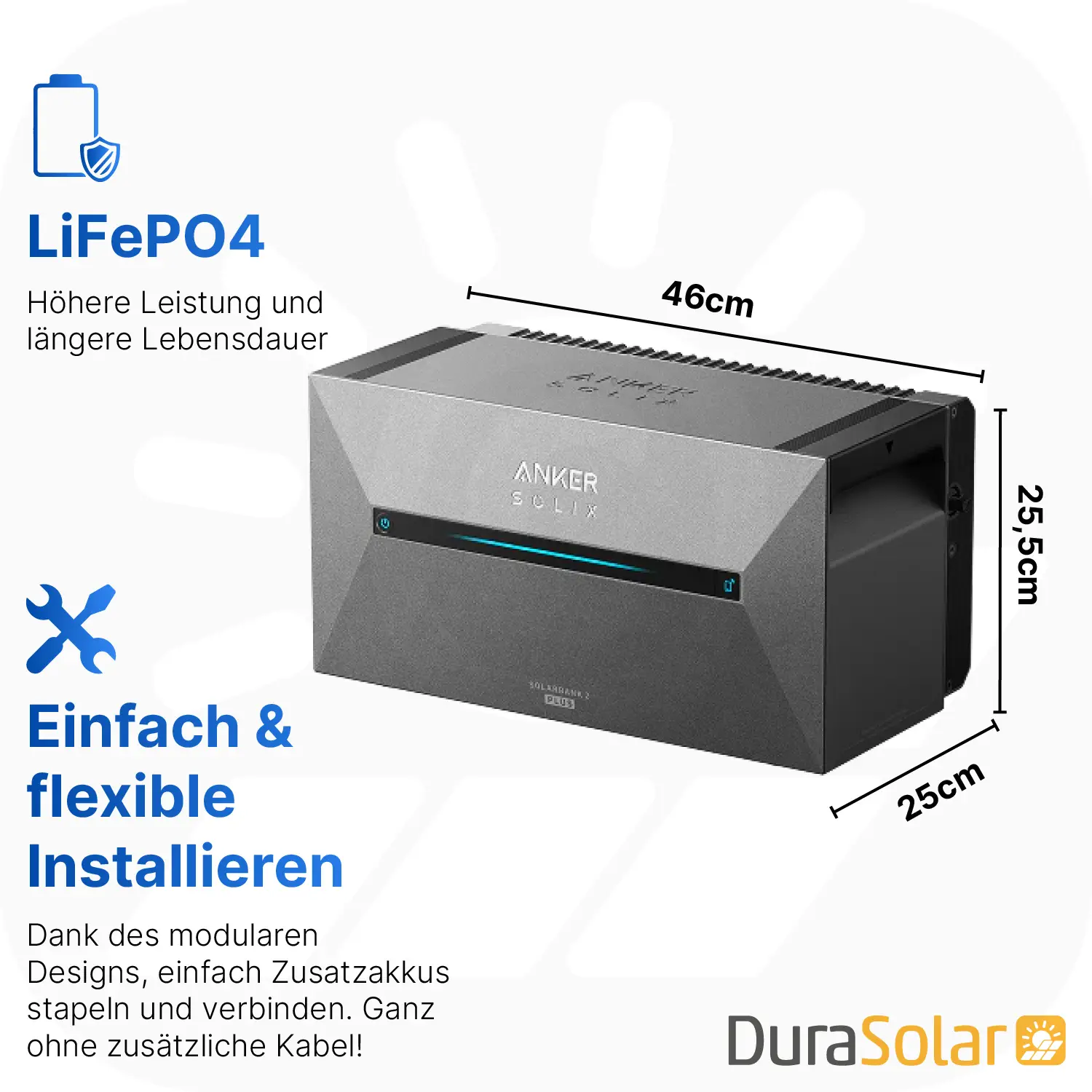 Maximiere die Leistung deiner Solaranlage mit der Anker Solix Solarbank 2 E1600 Pro – der ultimativen Speicherlösung für dein Balkonkraftwerk. Dank des integrierten 800-Watt-Wechselrichters und der Möglichkeit, bis zu 4 Solarmodule anzuschließen, profitierst du von einer hohen Energieeffizienz und Flexibilität. Die modular erweiterbare Speicherlösung lässt sich ganz einfach an deine Bedürfnisse anpassen und bietet eine bemerkenswerte Speicherkapazität von bis zu 9,6 kWh.