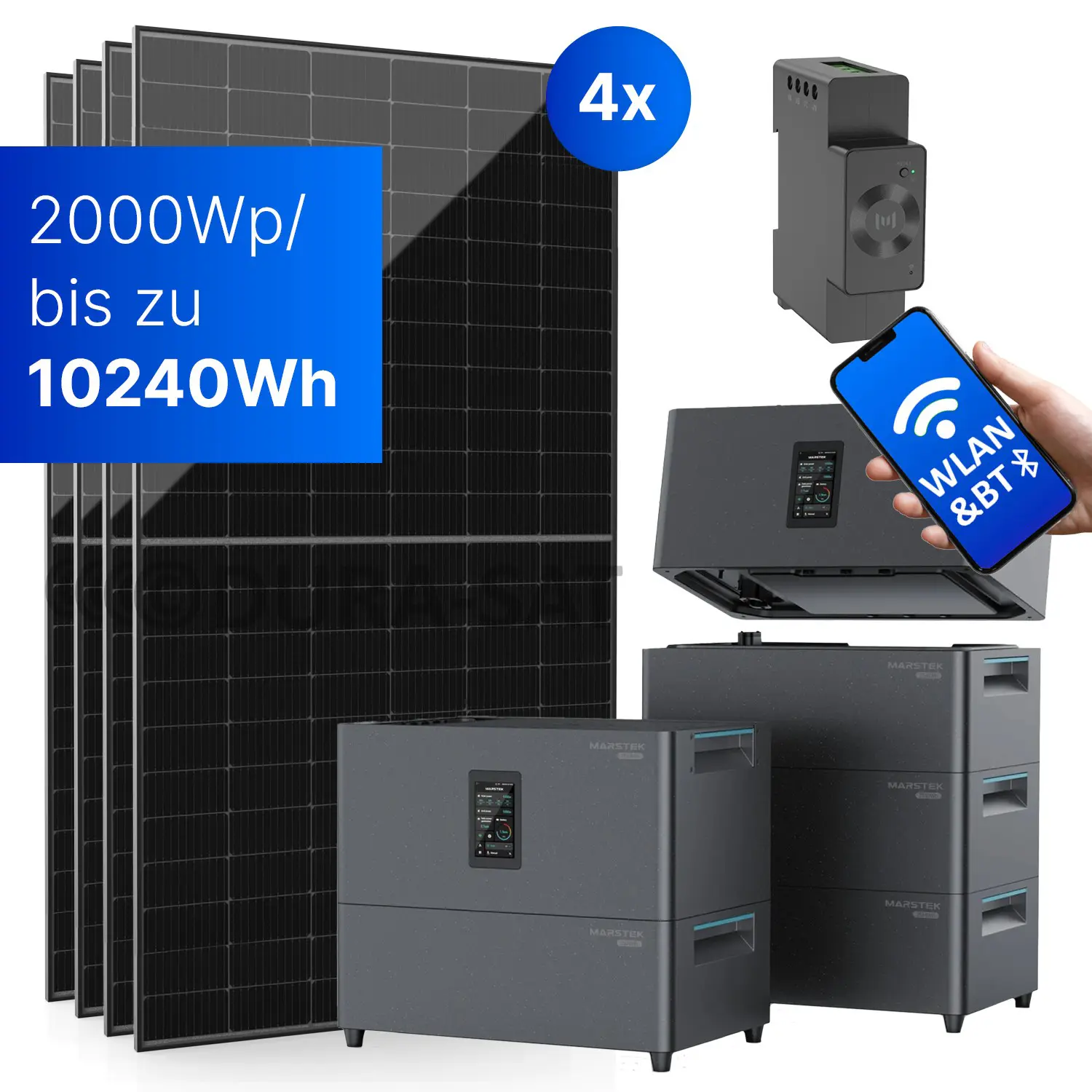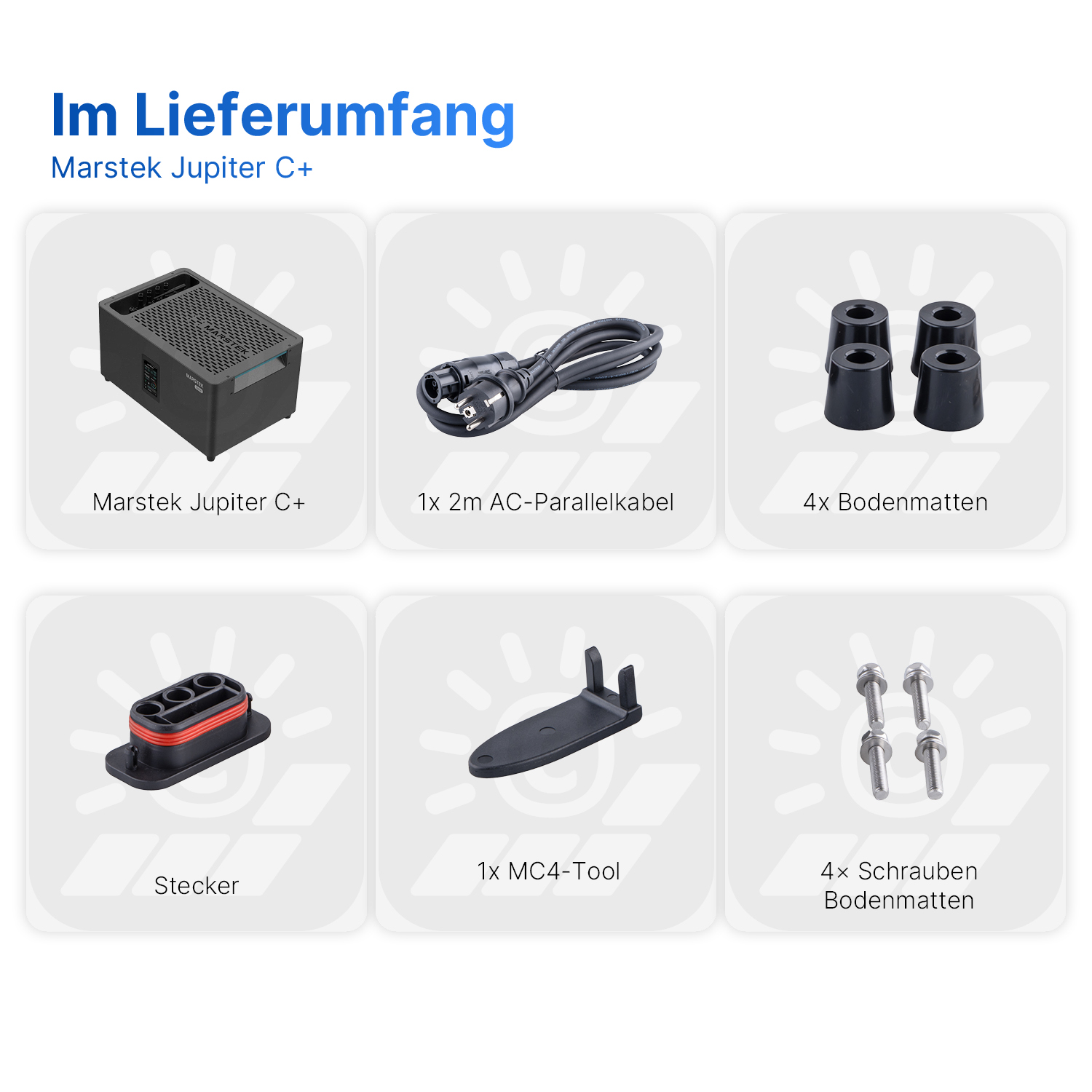 Dieses Komplettset mit Speicher bietet dir alles, was du für deinen Einstieg in die eigene Stromversorgung brauchst. Es besteht aus dem leistungsstarken MARSTEK Jupiter C+ Photovoltaik Speicher mit integriertem 800W Mikro-Wechselrichter sowie vier hochwertigen Jolywood 500Wp Solarmodulen und einem MARSTEK SmartMeter. Damit erzeugst und nutzt du deinen eigenen Solarstrom– ideal für Haus, Garten, Garage oder Ferienwohnung.