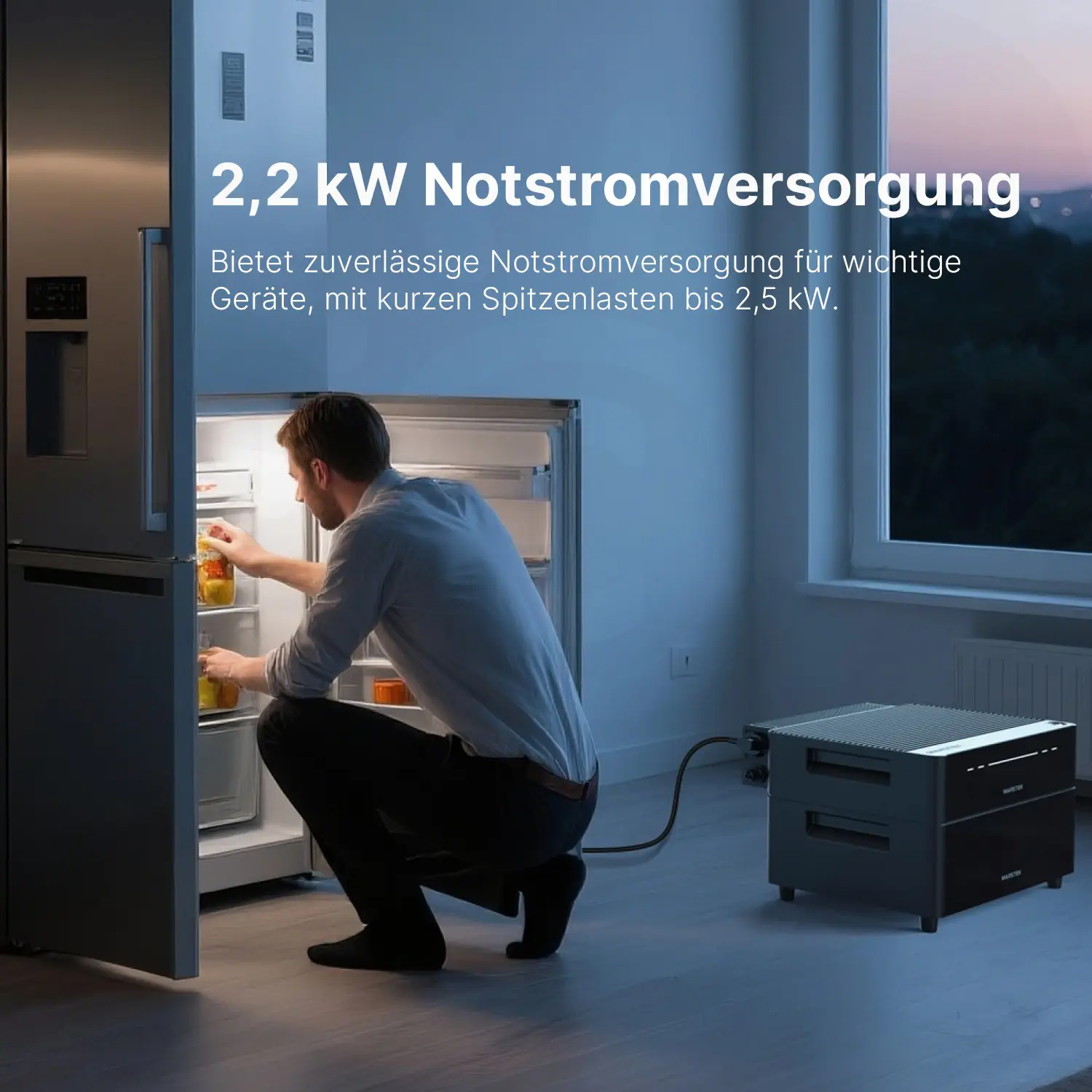 Bei Stromausfällen bestens versorgt: 2,2 kW Dauerleistung für wichtige Verbraucher, 2,5 kW Spitzenleistung, wenn es darauf ankommt