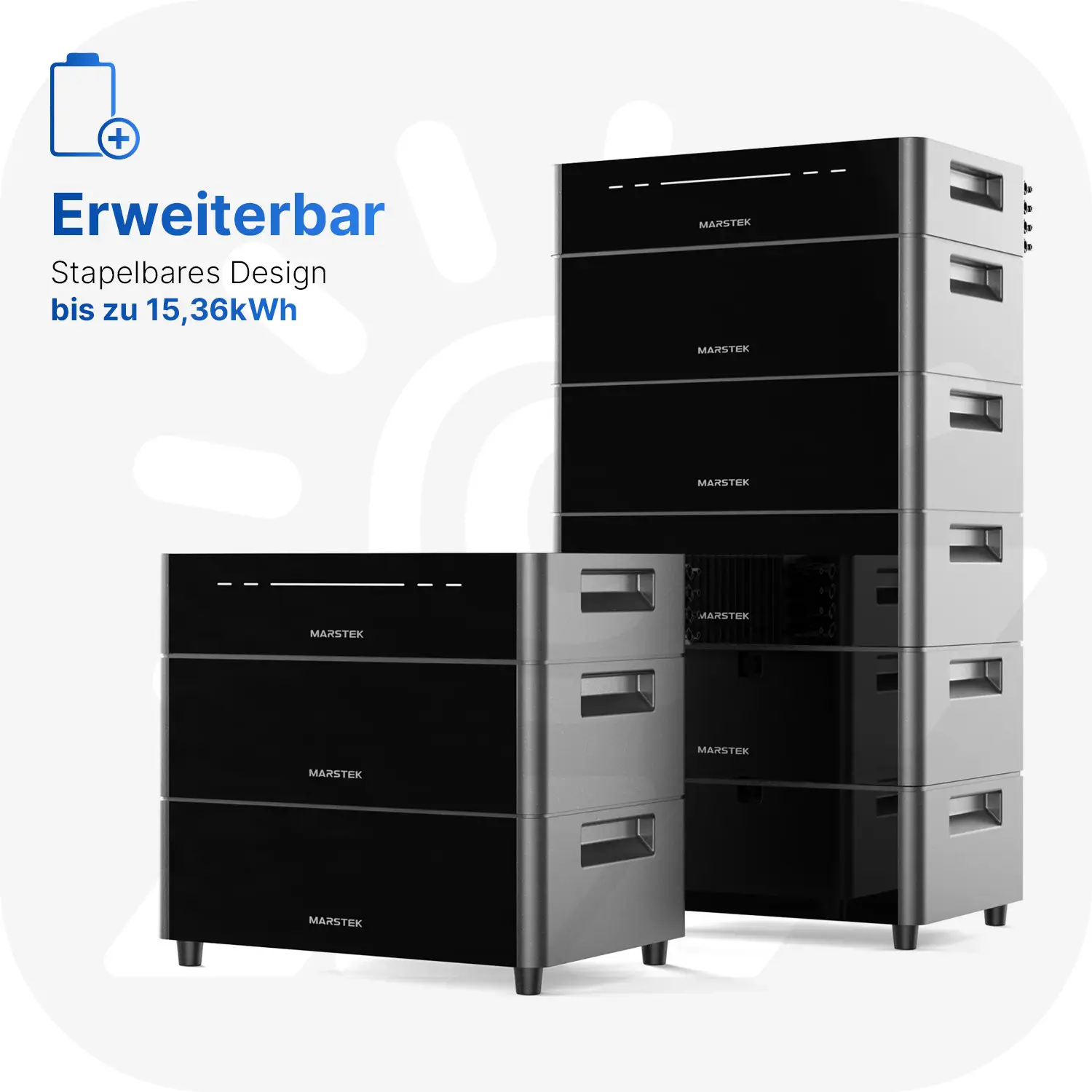 Im Mittelpunkt steht der Marstek Venus A, ein intelligentes All-in-One-System mit integriertem Akku, Wechselrichter und KI-gestütztem Energiemanagement. Mit einer modularen Speicherkapazität von 2,56 kWh bis 15,36 kWh passt er sich flexibel deinem Bedarf an. Dank der Notstromfunktion mit 1200 W Dauer- und 1440 W Spitzenleistung bleibst du auch bei Stromausfällen zuverlässig versorgt, in unter 15 ms.