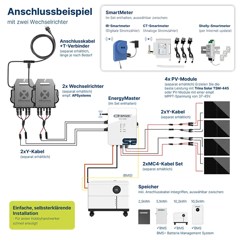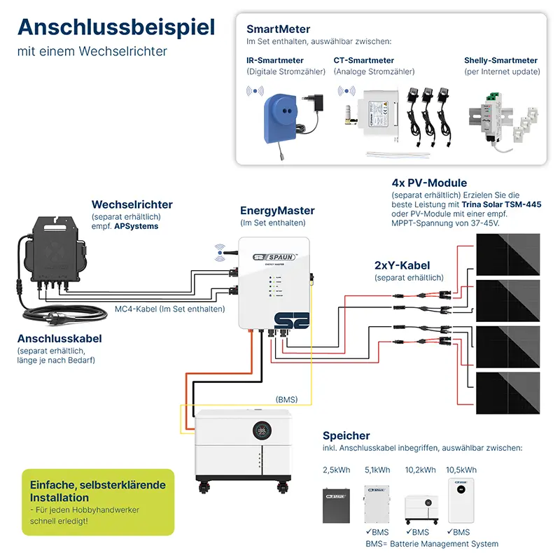 - Leistungsstarkes Balkonkraftwerkspeicher-System inkl. SmartMeter und Speicher