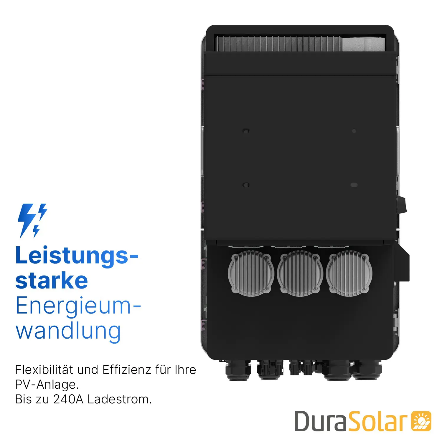 - Es unterstützt bis zu zehn Stück parallel, mit einer maximale Lade-/Entladestromkapazität von 240A, und bietet ein umfassendes Smart-Load-Management mit Grid-Peak-Shaving-Funktion.