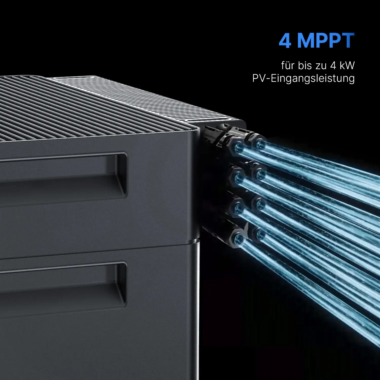 - 4 MPPTs mit bis zu 4000 W Solareingang für maximale PV-Effizienz