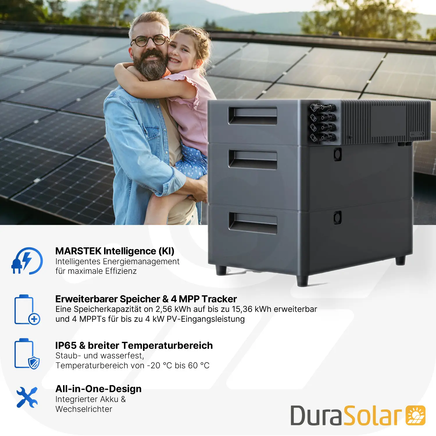 Das MARSTEK VENUS D ist ein intelligentes Solarsystem, das Solarenergie effizient speichert, Notstrom bereitstellt und eine nachhaltige, sichere Energieversorgung ermöglicht.