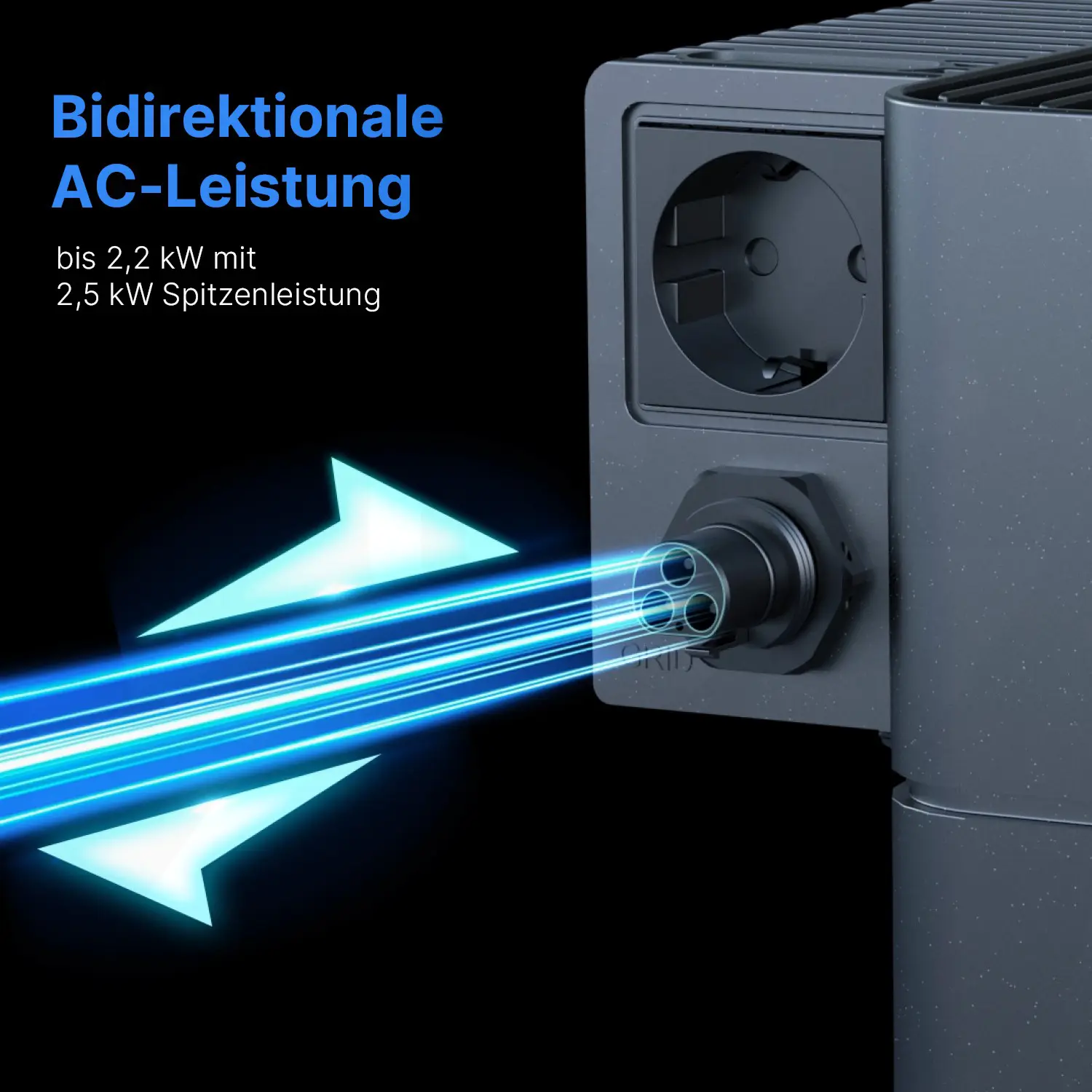 - 2200 W AC-Kopplung mit bidirektionaler Leistung