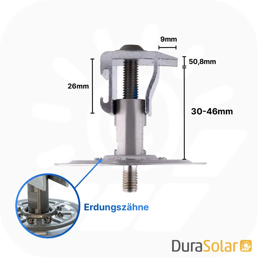 - Ideal für Solarmodule mit einer Rahmenhöhe von 30 bis 46mm geeignet