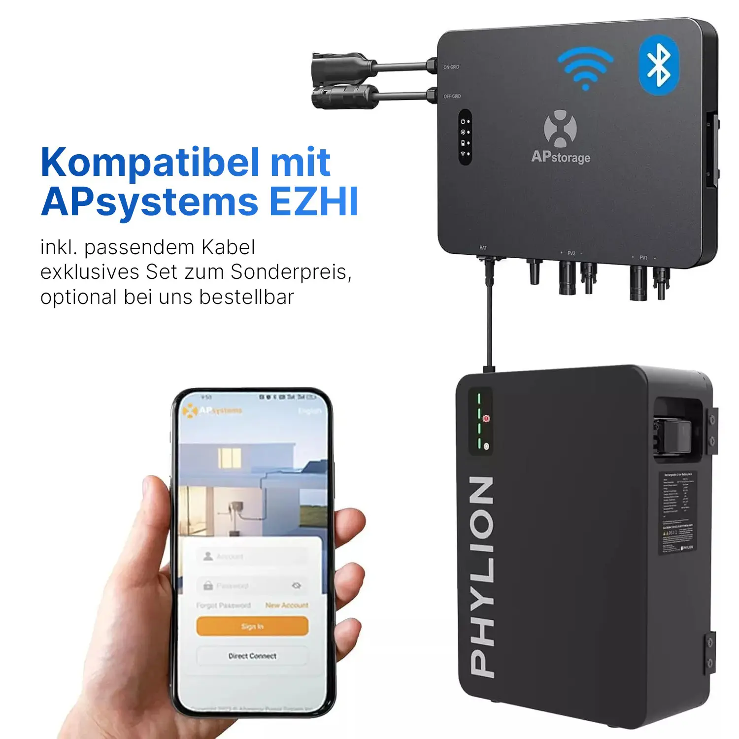 Der Phylion 2,76 kWh LiFePO4-Speicher ist die ideale Ergänzung für Balkonkraftwerke und kompakte PV-Anlagen, die mit einem APsystems EZHI betrieben werden.
