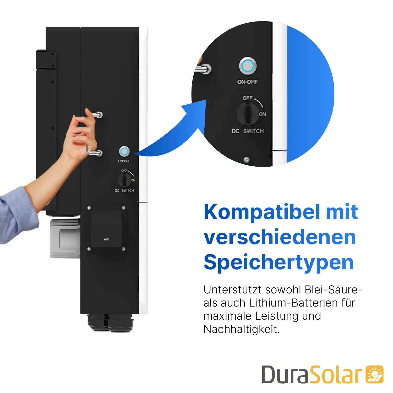 Zusätzlich ist der Wechselrichter kompatibel mit Dieselgeneratoren, was ihn zu einer vielseitigen Lösung für private, gewerbliche und industrielle Anwendungen macht.